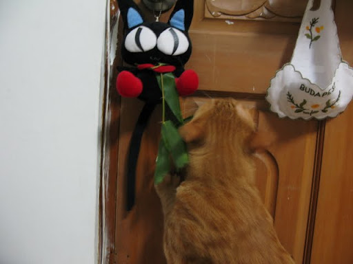 搬到新家以後,開始限制喵喵外出的自由,偶而有空才會綁著繩子帶喵出門散步。不過帶喵散步很無趣的是喵會站在原地發呆好一陣子才會前進幾步,搞的我一整個沒耐心。所以只好改採每天偷採竹子回來餵食,這樣就不用常常出門散步囉。