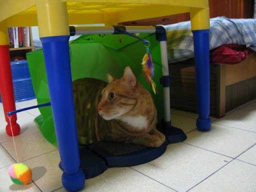 買飼料的時候順便帶回了這超便宜貓窩,帶回來才知道為什麼這麼便宜。後面那塊塑膠布根本組不起來阿,難怪會大大大特價!